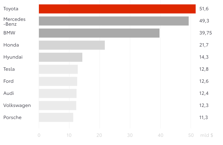 | 11. | Toyota | 41,5 |