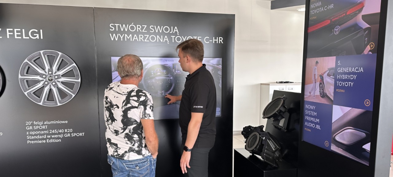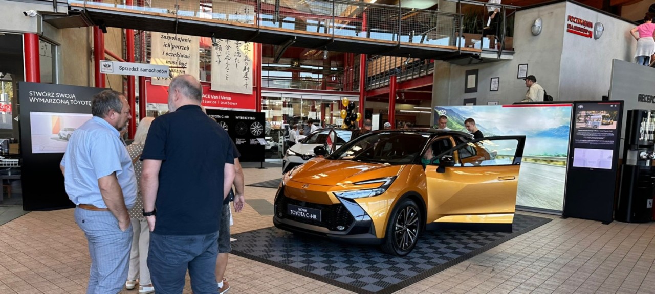 Na dużym ekranie w każdym salonie klienci mają możliwość skonfigurowania swojej własnej nowej Toyoty C-HR. W czasie prezentacji istnieje też okazja skorzystania z wyjątkowej oferty przedpremierowej. Nowy model Toyoty C-HR dostępny jest już bowiem od 139 900 zł. Ponadto każdy może zapoznać się z różnymi opcjami finansowania, w tym z programem KINTO ONE, który oferuje elastyczne warunki i niskie raty miesięczne już od 1342 zł netto dla przedsiębiorców oraz od 1653 zł dla klientów indywidualnych.