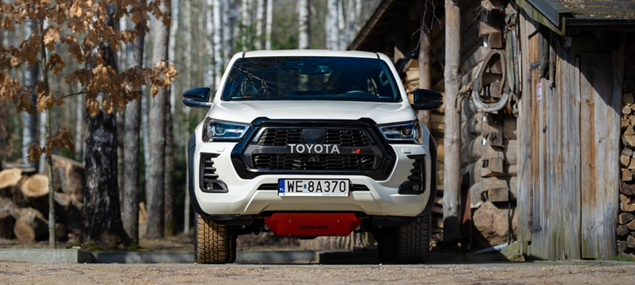 Hilux w najwyższej wersji GR SPORT charakteryzuje się udoskonalonymi właściwościami jezdnymi i specjalnymi elementami stylistycznymi. Dodać do tego należy modyfikacje zwiększające możliwości w terenie, takie jak m.in. amortyzatory jednorurowe z przodu i z tyłu, które zapewniają lepsze tłumienie, szybsze reakcje oraz lepsze odprowadzanie ciepła. W przednim zawieszeniu zastosowano usztywnione sprężyny śrubowe. Podwozie zostało zabezpieczone aluminiowymi osłonami silnika oraz tylnego mostu. Aby modyfikacje były widoczne z zewnątrz, sprężyny, amortyzatory i osłony zostały polakierowane na czerwono.